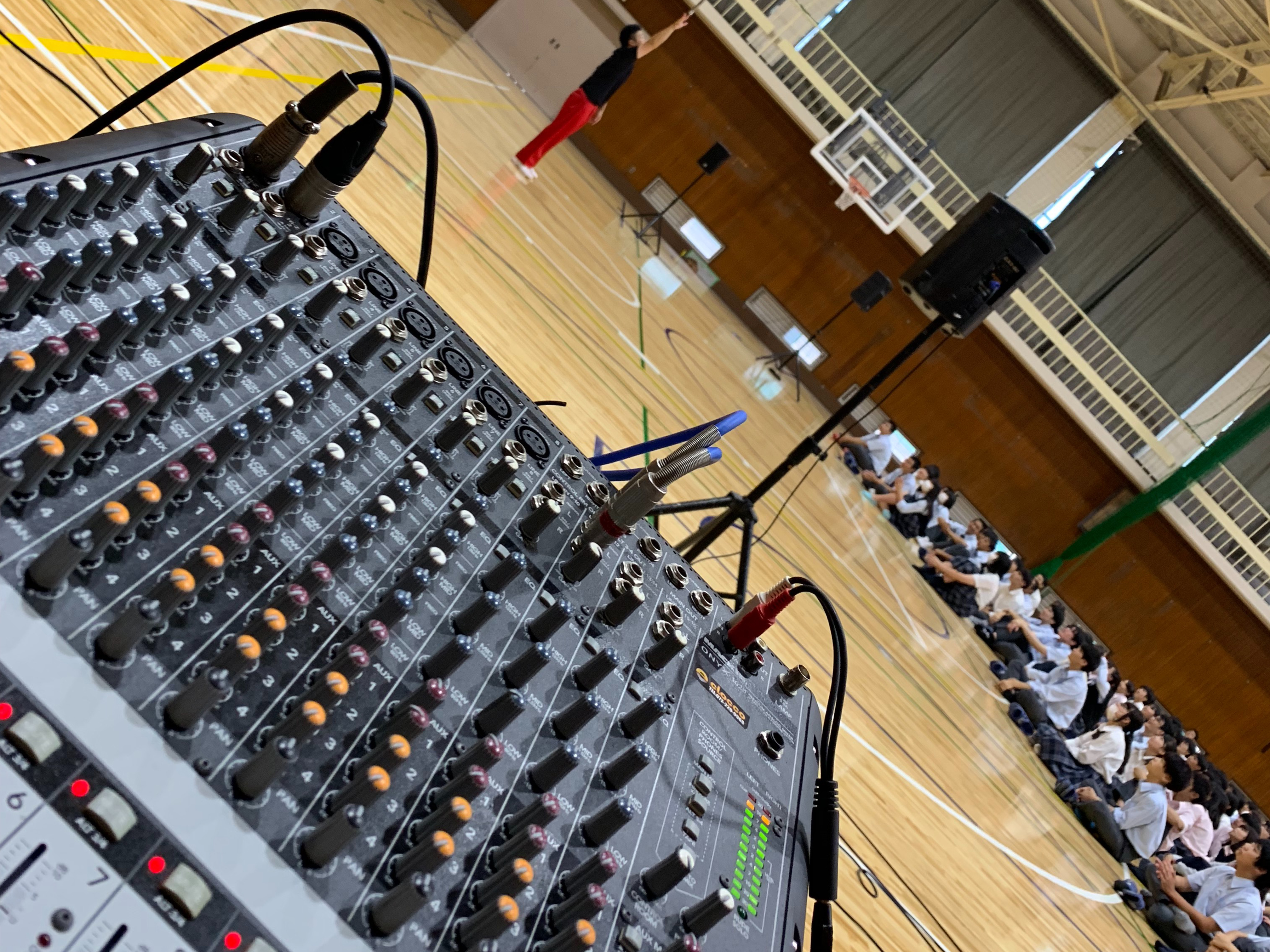 体育館や大きな講義室など音響機材のない場所でも実施可能。学校行事でも本格的な音響を提供致します。